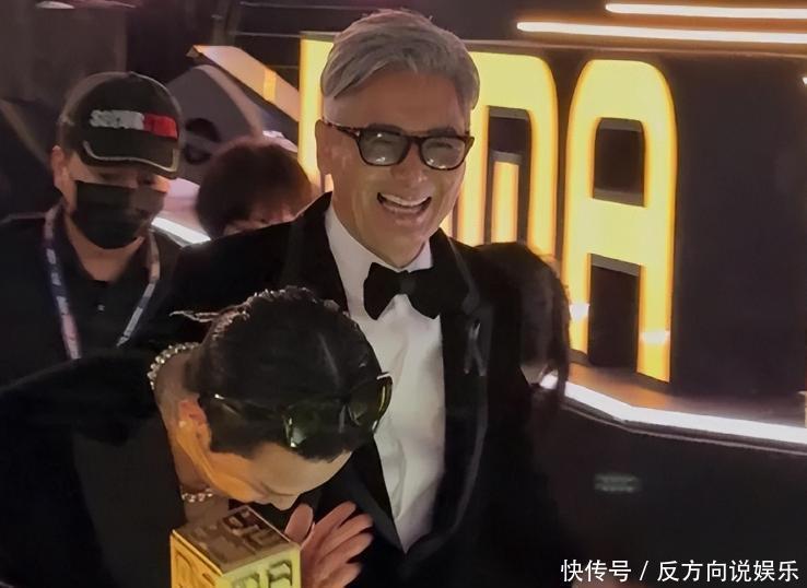 没想到,仅仅几分钟功夫,他那满心的悲伤就被欢笑和打闹给冲散了。看着权志龙一上台,两人就在舞台上扭着腰肢跳起舞来,手拉手笑得“咯咯”响,眼睛都快眯成月牙了。更让人摸不着头脑的是,走出场外之后,他竟然还能和一众明星一块合影,个个脸上都挂着灿烂的笑容。大家拼在一块合影时,他更是站在相当不错的位置,把脸紧贴着镜头,生怕自己被别人挡到。